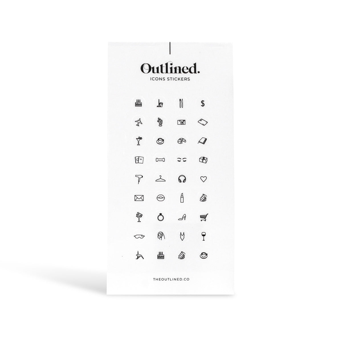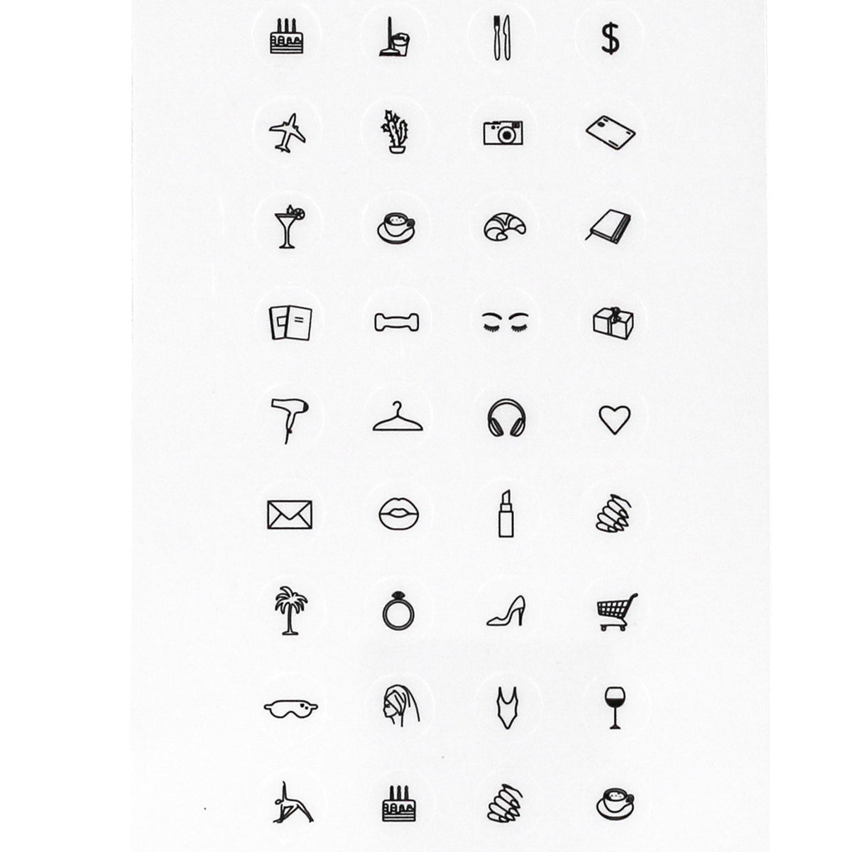 Icon stickers; perfect for birthdays, spa days, journaling sessions, coffee dates, and more. Glossy, transparent, waterproof finish.