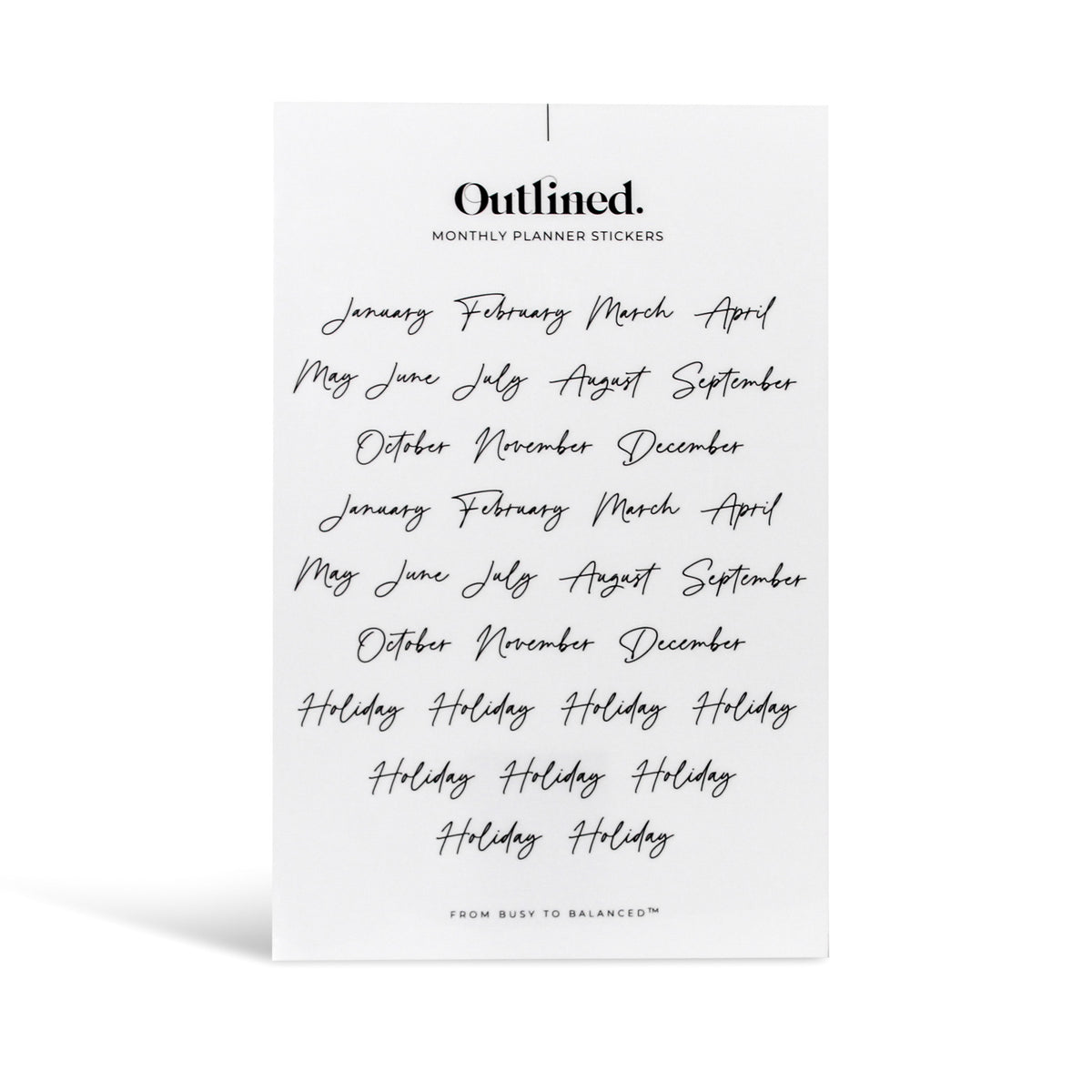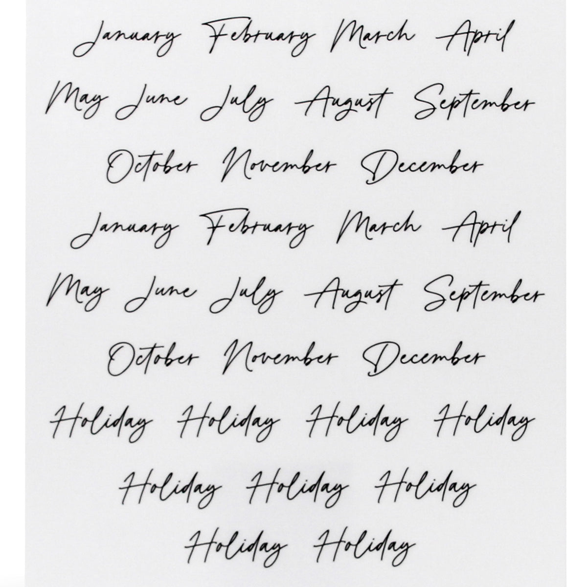 This set includes one sheet of monthly and "Holiday" stickers. They are transparent and waterproof, with a glossy finish.