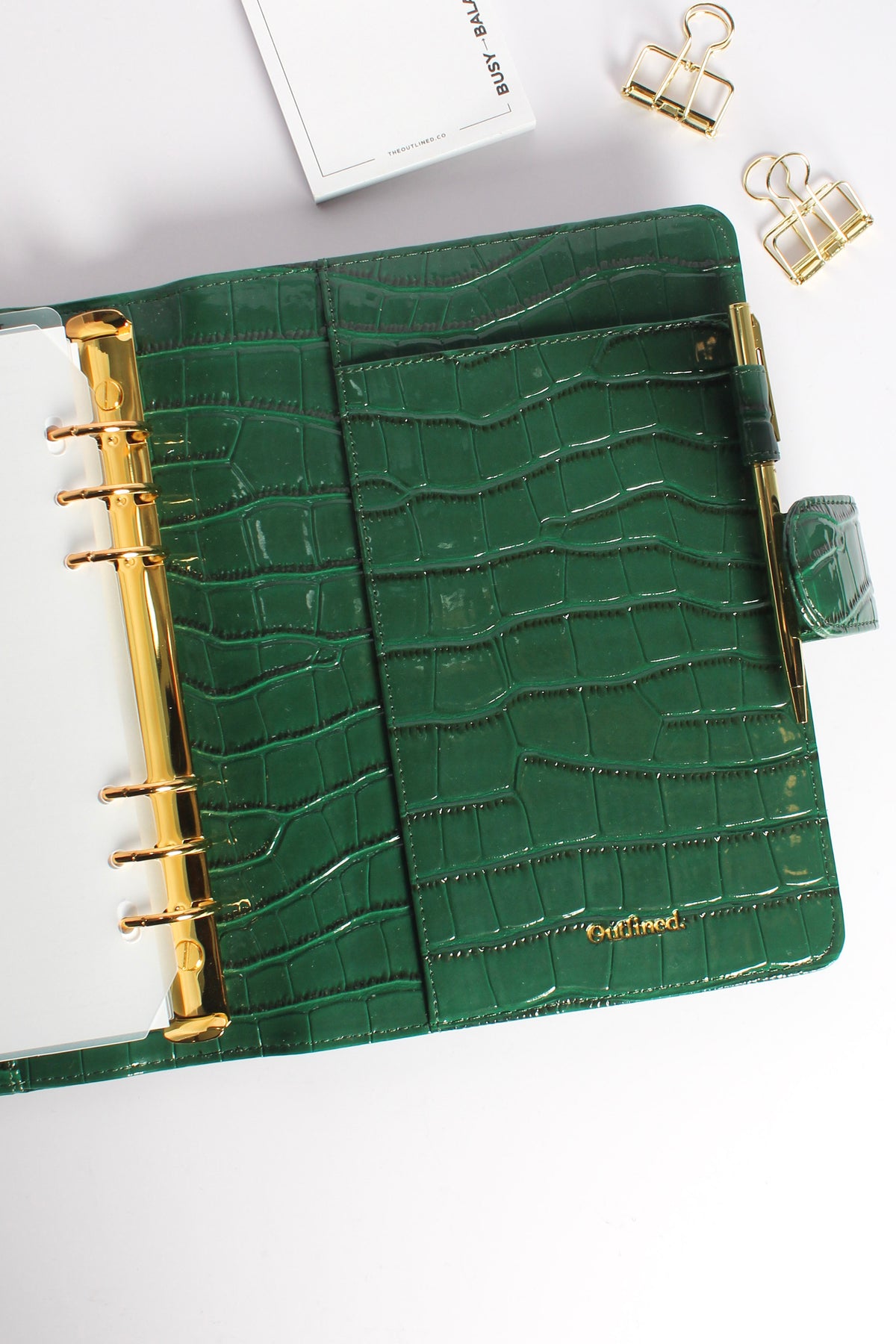 Wrapped in vegan patent leather with gold hardware, our striking green croc agenda is seriously a mood! It's a must-have and the perfect statement piece. It pairs perfectly with our A5 inserts. Keep it simple or create your own custom planning system by adding and removing pages.