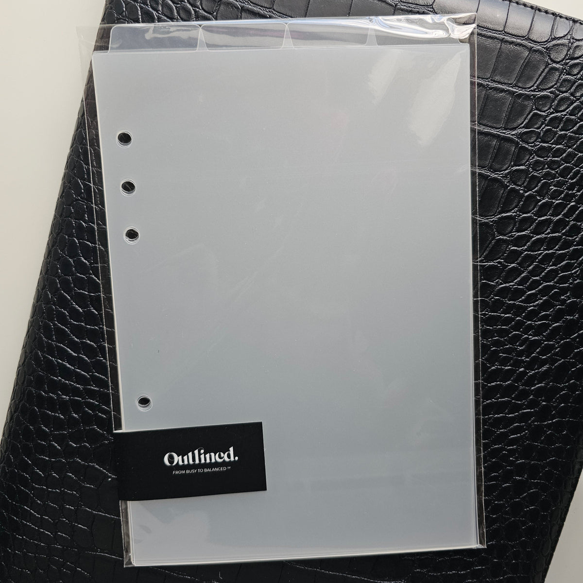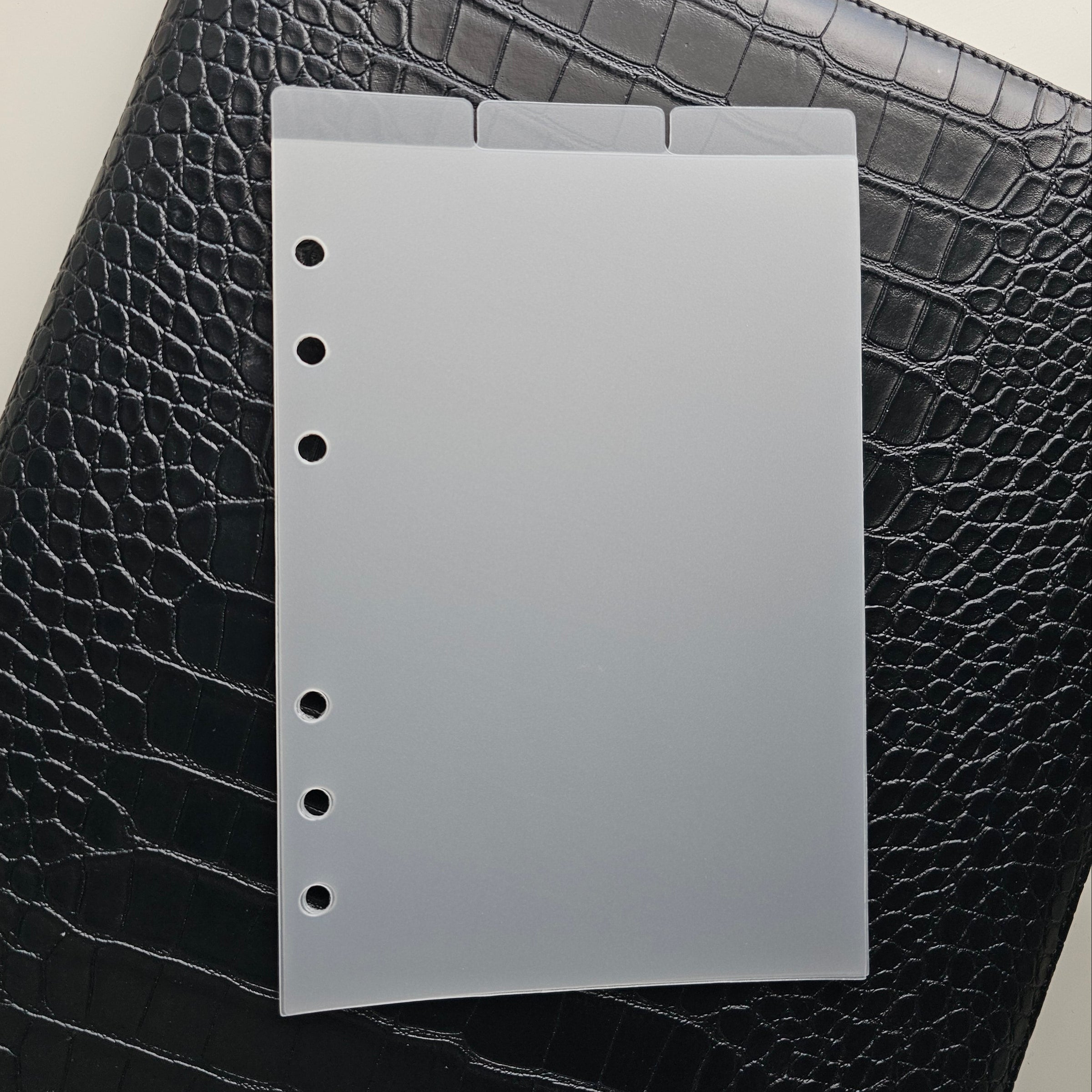 Keep your planner sleek and organized with our frosted top tab dividers — the perfect minimalist solution for separating sections like notes, projects, finances, and more. Designed for both style and function, these durable plastic dividers add structure and simplicity to any 6-ring or discbound planner system.