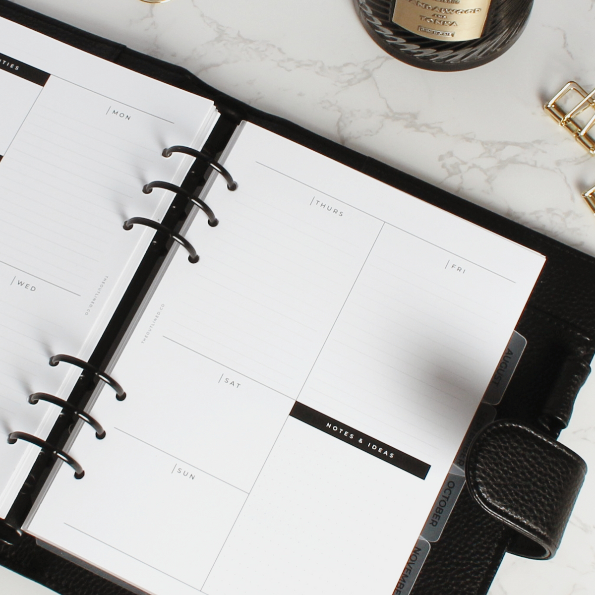 *Note: Planner pages are A5 size and undated. Grid layout (see photos)