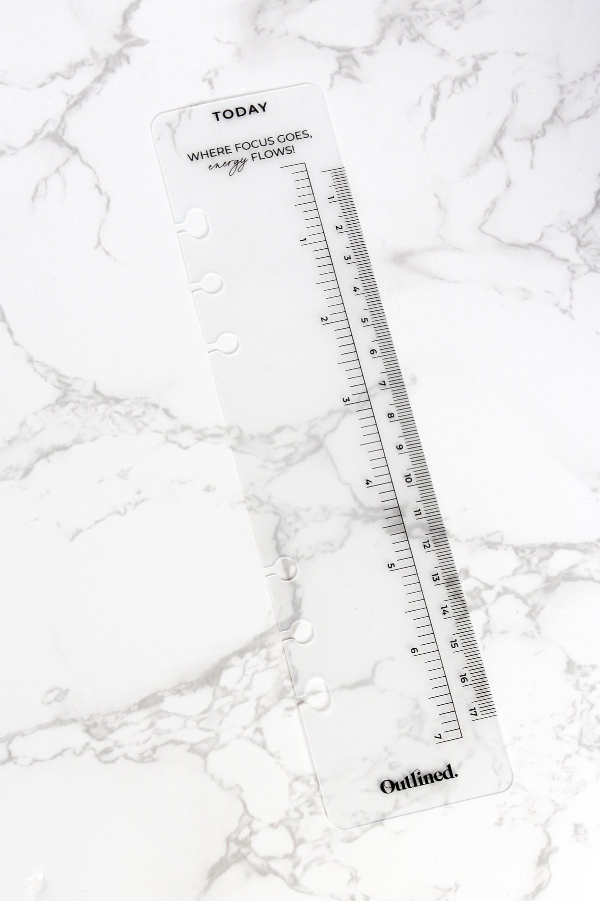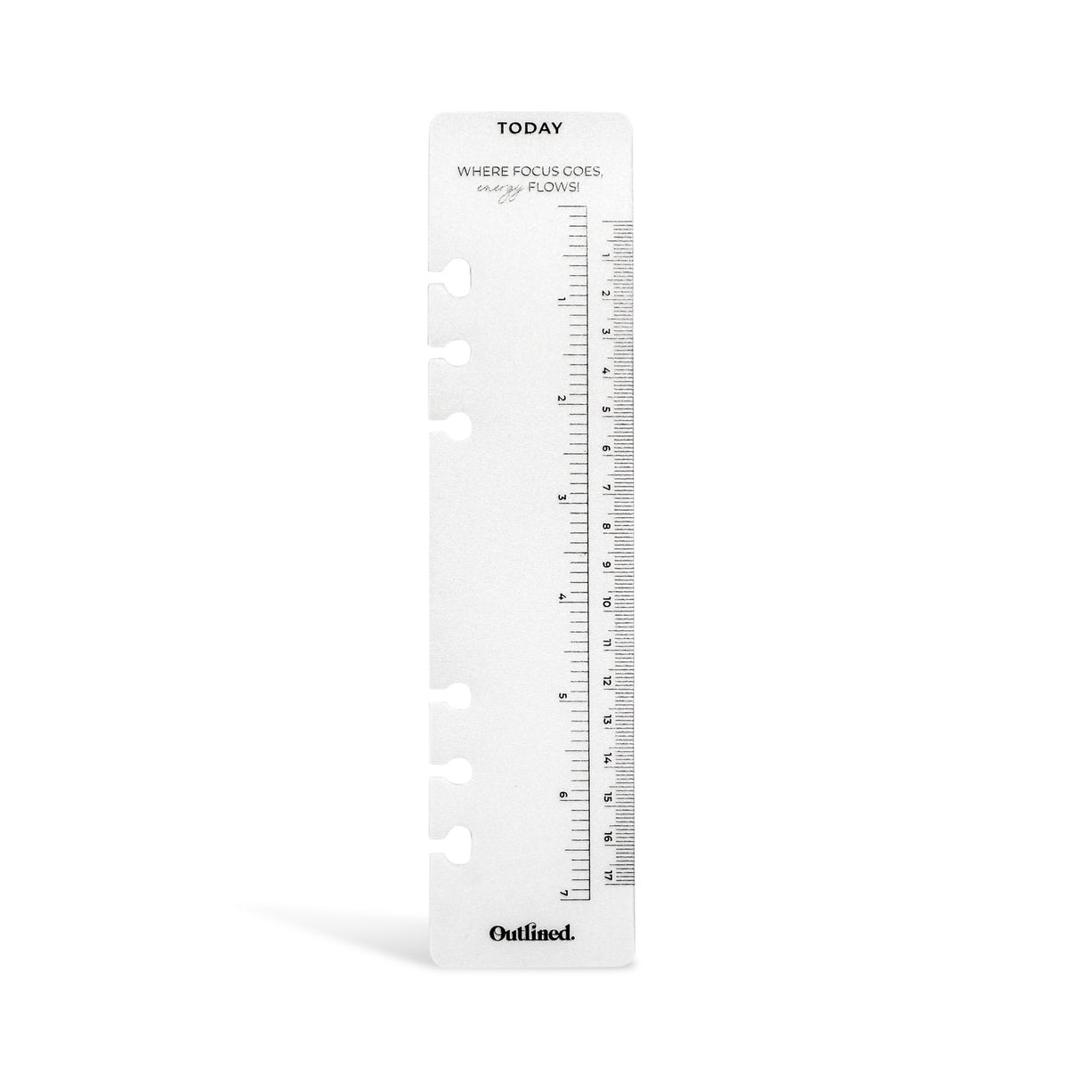 Our Today Bookmark is an absolute planner essential! It features a top tab to help you quickly navigate to the current day/week, a ruler, and an inspiring productivity quote: "Where focus goes, energy flows."